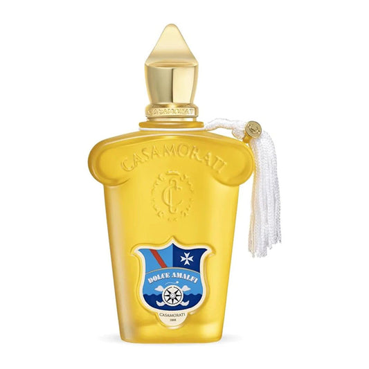 Top: apple, saffron, quince, cardamom, Heart: cloves, incense, tolu balsam, Base: vanilla, tonka bean, cedar, musk, amber, Xerjoff Casamorati Dolce Amalfi. |