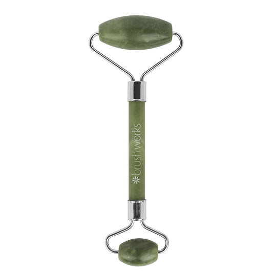 The HD Jade Roller by BRUSHWORKS is a beauty tool that is designed to help improve the appearance of your skin. It is made with natural jade stone and features a double-ended roller with a larger roller for the face and a smaller roller for delicate areas like the under-eye area.