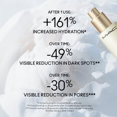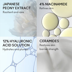 Designed to be used with or without makeup, this science-backed and Artist-approved serum-moisturizer hybrid visibly reduces dark spots and the appearance of pores, hydrates, retexturizes and strengthens the skin barrier for a petal-smooth, even canvas with lit-from-within radiance. The high-performance formula is powered by resilient and rare Japanese Peony Extract, 4% skin-refining Niacinamide, 12% hydrating and plumping Hyaluronic Acid Solution, and restorative Ceramides to deliver immediate and long-lasting results. Infused with a blend of ultra-fine, light-diffusing pearlescent particles, the formula subtly enhances skin for a healthy-looking glow. Tested on all skin tones. |