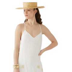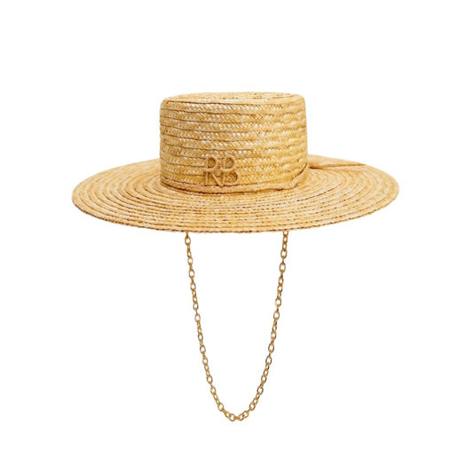 Meet the Monogram-Embellished Chain Strap Straw Boater Hat—Ruslan Baginskiy’s latest masterpiece for the modern trendsetter. Crafted from premium straw, this sophisticated boater hat combines timeless elegance with a contemporary edge. The chic hue effortlessly elevates any outfit, while the signature monogram embellishment on the band introduces a touch of bespoke charm. Adding a bold, modern twist, the chain strap transforms this classic silhouette into a head-turning statement piece. Whether you're dressing up for a garden party or looking to infuse everyday outfits with effortless flair, this versatile accessory is the epitome of fashion-forward design. |